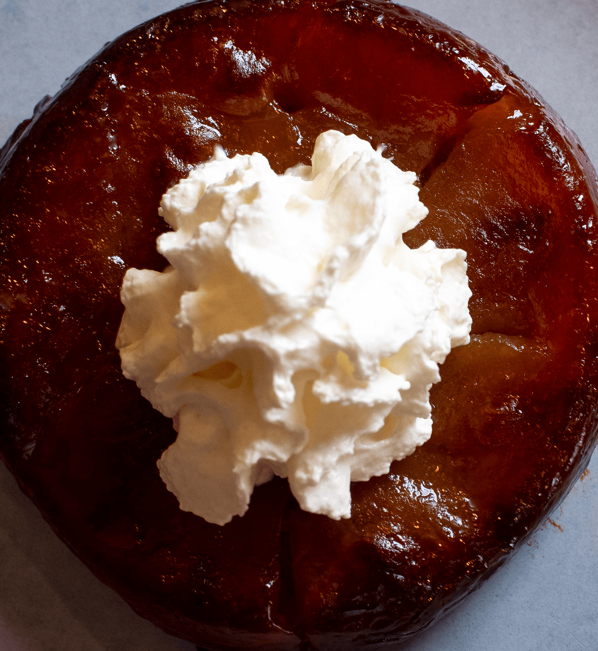 Pommes lentement confites dans un caramel doré sur une pâte croustillante et servies tièdes